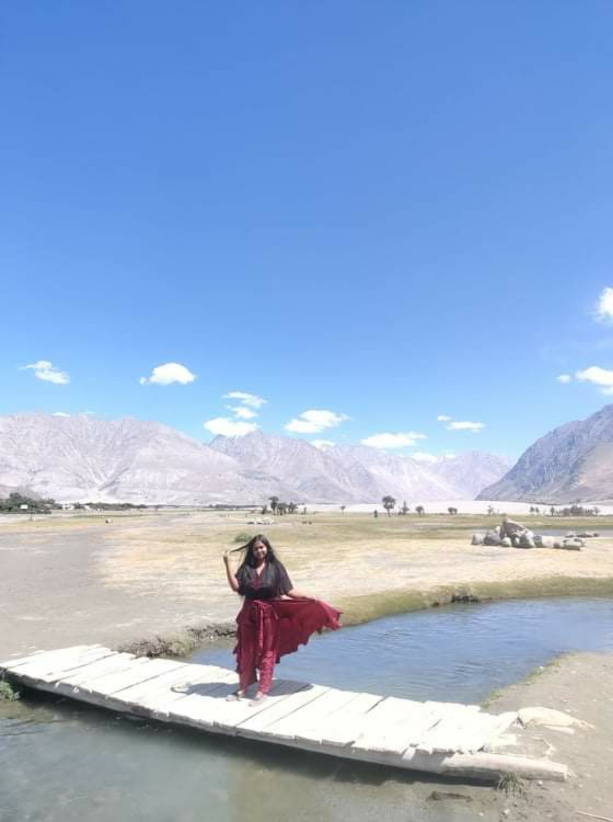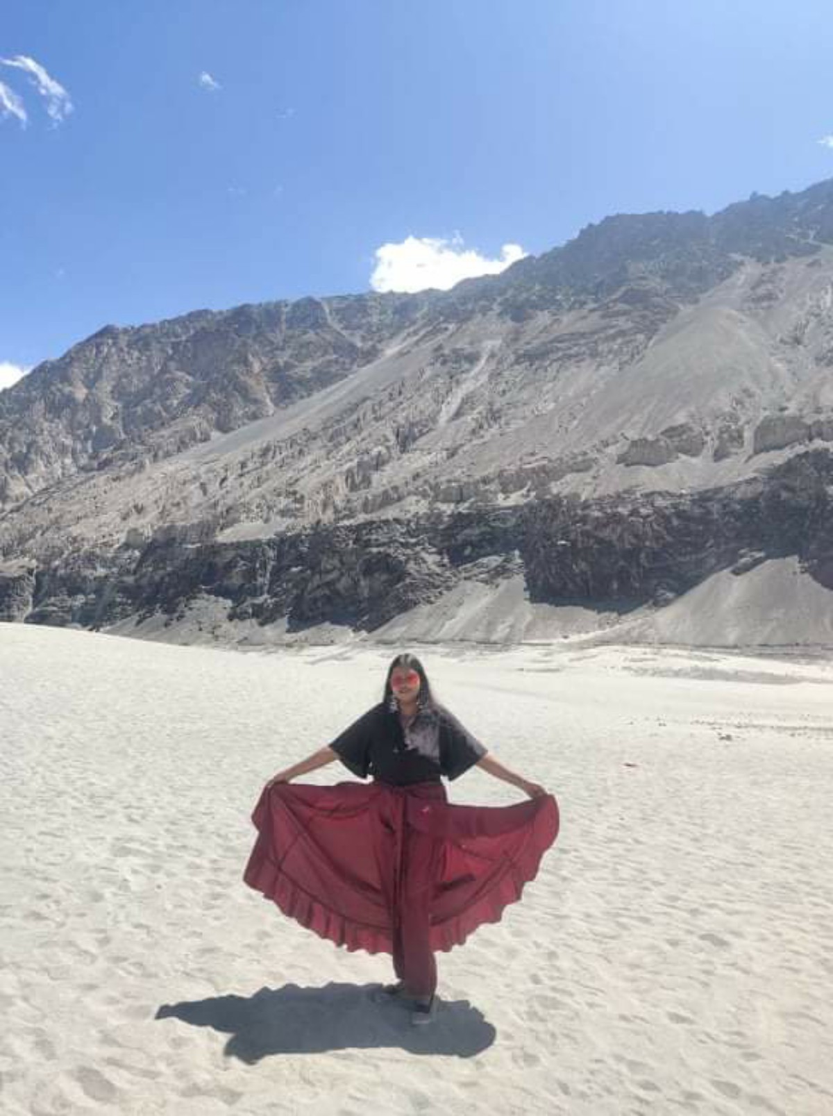 The next day was all about waking up late and asking our driver to show us some offbeat places in Nubra. We did check the bacterian camels but we chose not to ride them as we believe in not torturing these animals just for the sake of our joy ride. We instead decided to walk in the white deserts of Nubra with our very own feet. Honestly it is the only place where you can see both mountains and desert, honestly its pristine. Turtuk is a famous destination and you can visit, we chose not to go for it as we wanted to see some hidden gems.
